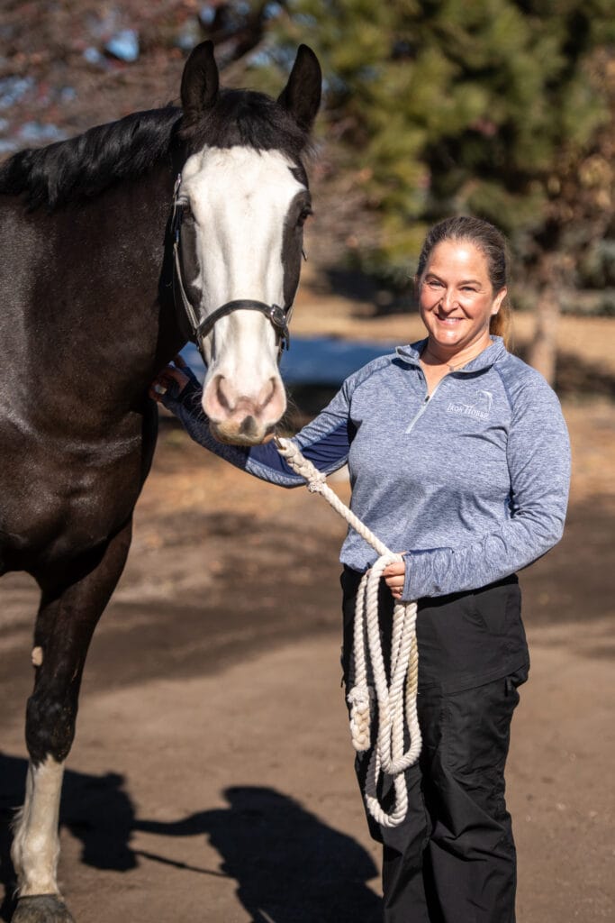 Chelsea grew up in Pony Club and volunteered at Colorado Horse Rescue in Longmont for years. While she hasn’t been active in the riding world since the intercollegiate team in her undergraduate years, she is grateful for the opportunities to be constantly surrounded by wonderful client horses. In 2024 she became certified in Equine Therapeutic Massage bringing more complementary care options to our clients. In her free time, she loves to go hiking and traveling with her husband Scott and her fur baby, Redding and her daughter, Louisa.