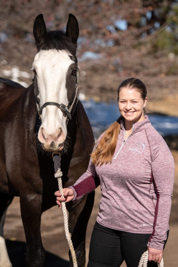 Alexis is a dedicated Customer Service Representative at Iron Horse Equine, bringing her lifelong passion for horses to the forefront of her career. Growing up in a small town in New Jersey, Alexis discovered her love for horses at a young age. Her journey with horses has been an adventurous one, including traveling across the country with her partner, Andrew, as they participated in jousting events before finally settling down in Colorado.